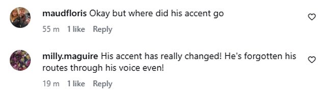Fans quickly took to social media to comment on the change in his accent, with some writing: ‘He’s sounding American.’
