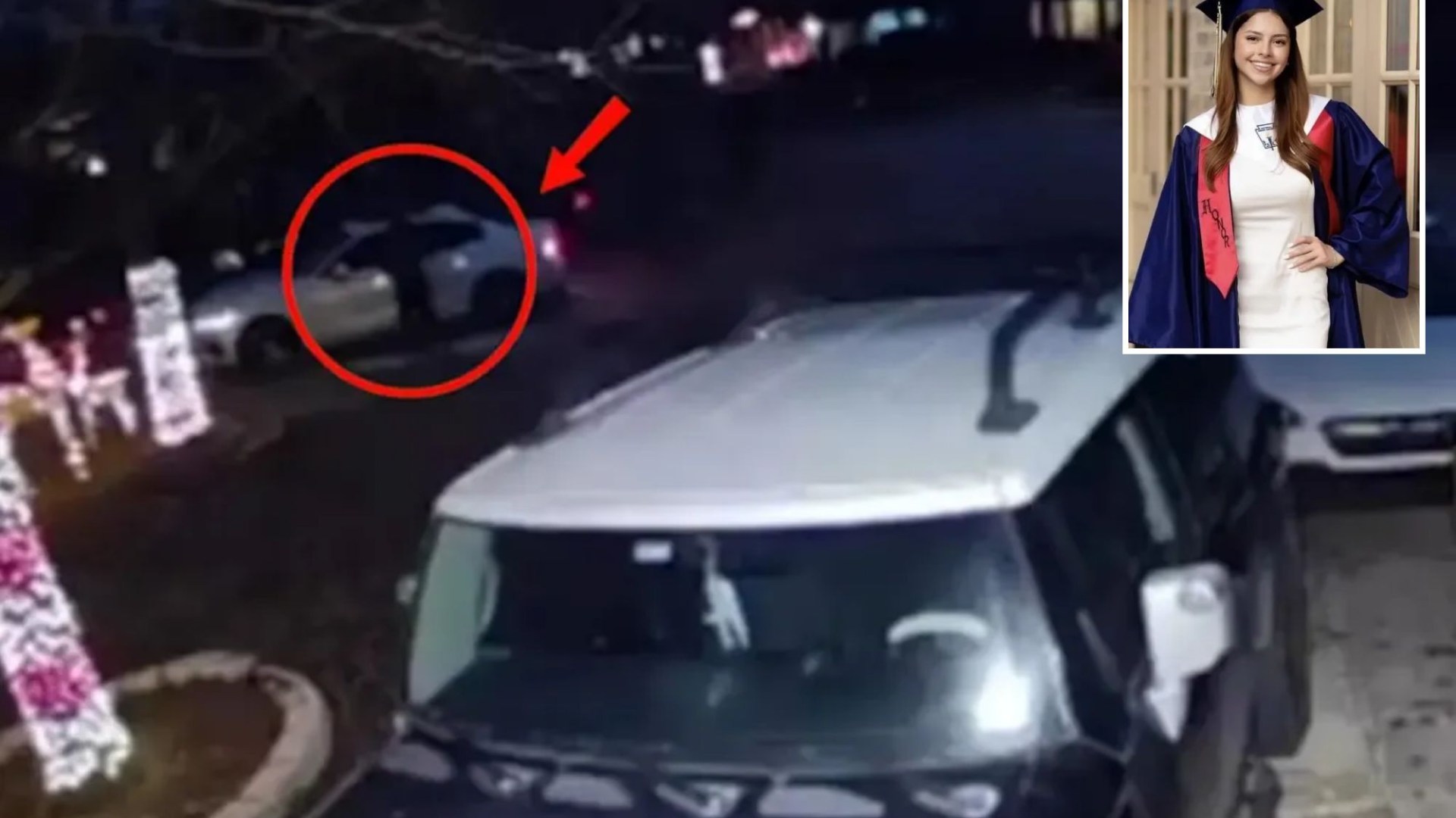 The footage shows her rummaging through her car for an unknown item before the camera cut off.