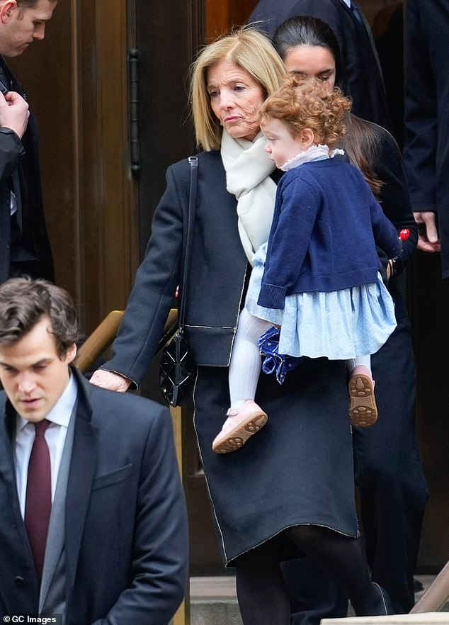 Caroline Kennedy carries her one-year-old granddaughter, Josephine, as she leaves her daughter’s funeral earlier this week
