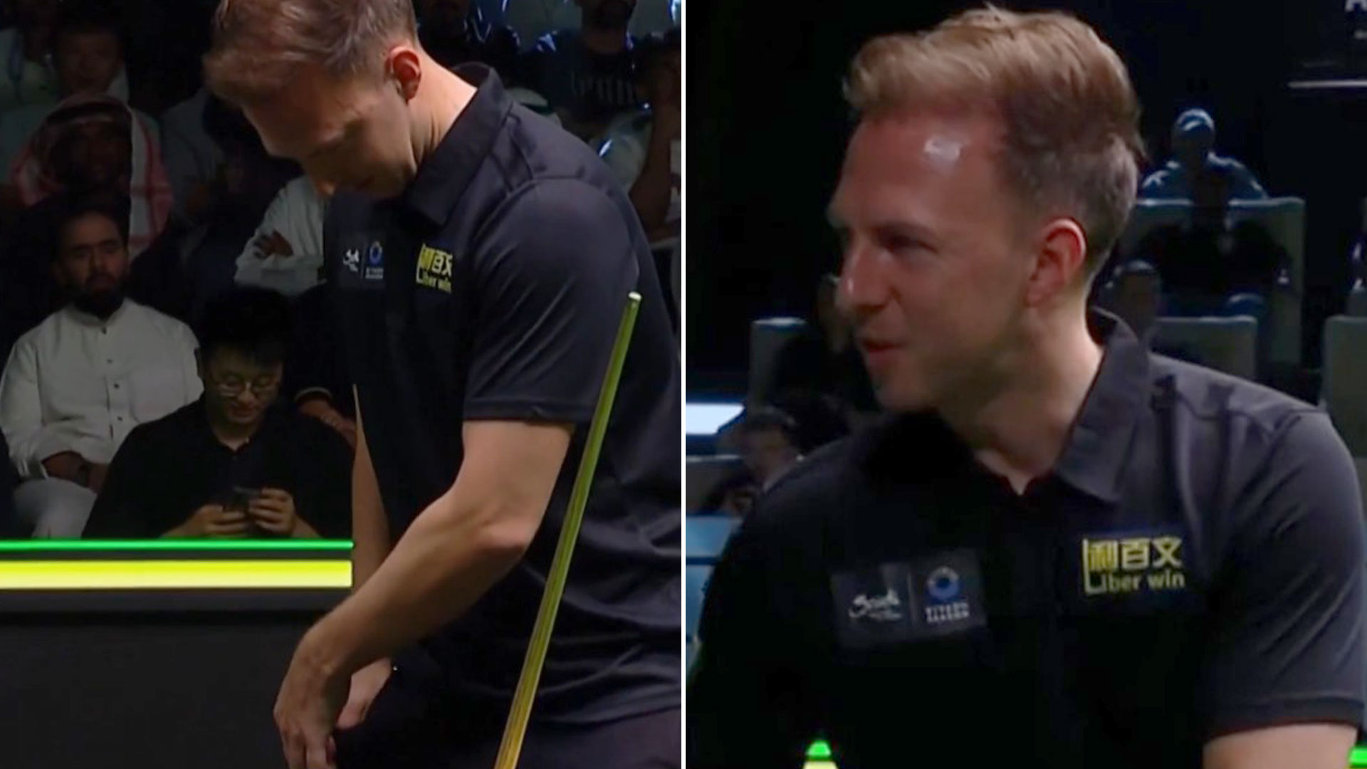 JUDD TRUMP was left snookered and needed help from the match referee after getting chalk stuck in his pocket at the Riyadh Season Snooker Championship.