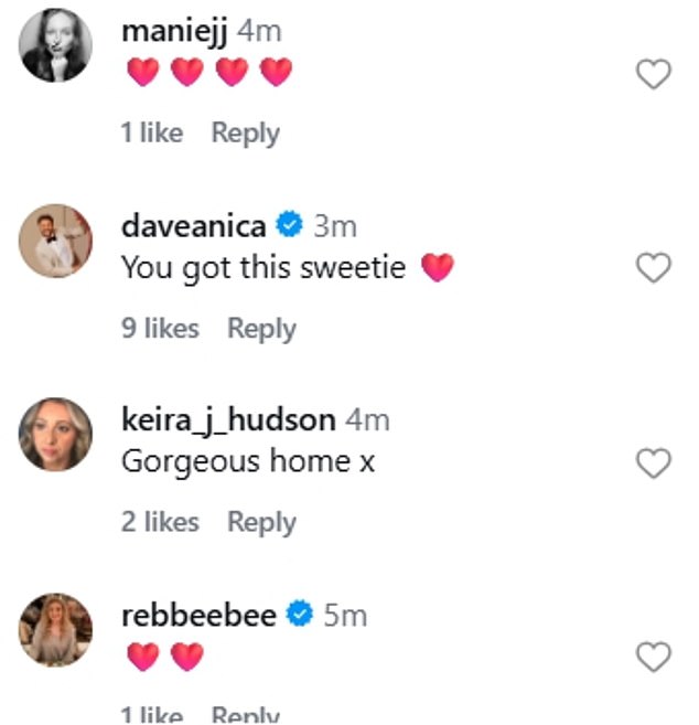 They wrote: ‘You got this sweetie’; ‘1 in front of the other one day at a time x’; ‘As the kids are saying on Love Island – Charge It’;