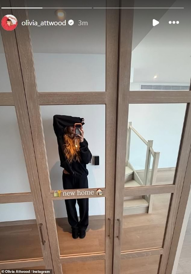 Posing for a selfie in front of her mirrored wardrobes, she wrote: ‘2026.. a new home in the city I was born in’.