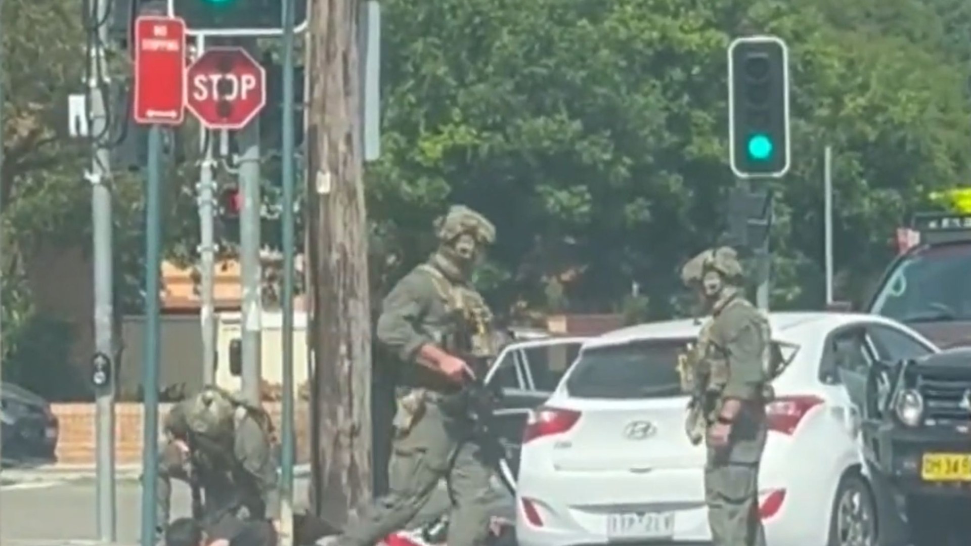 HEAVILY armed cops rammed a car to arrest at least five people in Sydney just days after Bondi terror attack.
