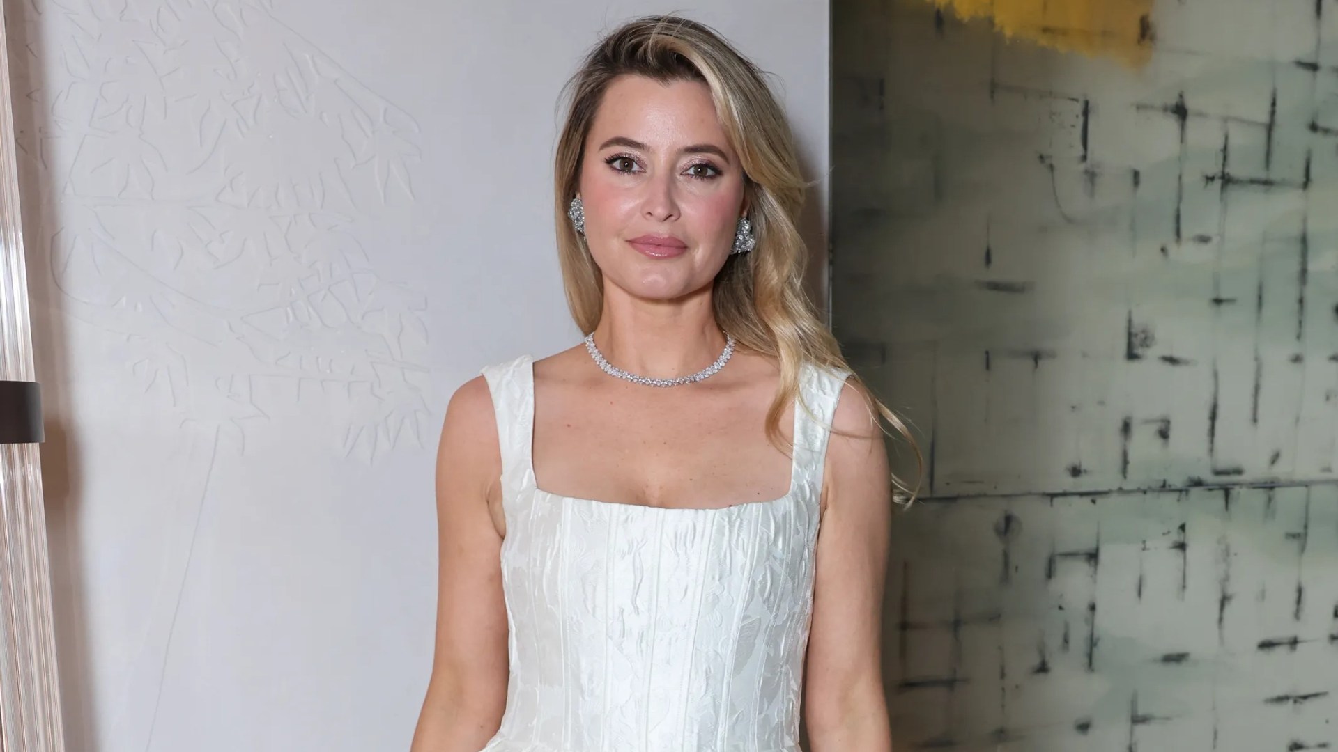 Singer and actress Holly, 42, wore a white brocade minidress and was dripping in diamonds on a night out in London.