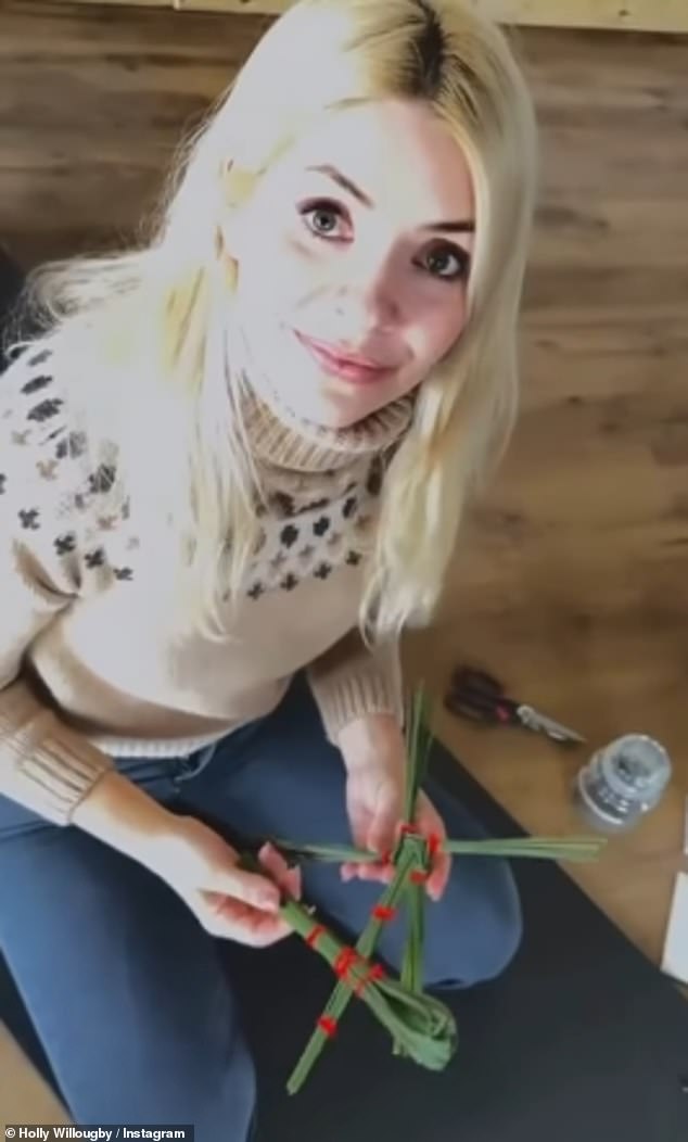Holly captioned the clip: ‘We drank the Sacred Cacao to open our hearts, selected oracle cards for guidance and crafted reed dollies as blessings of renewal & protection’