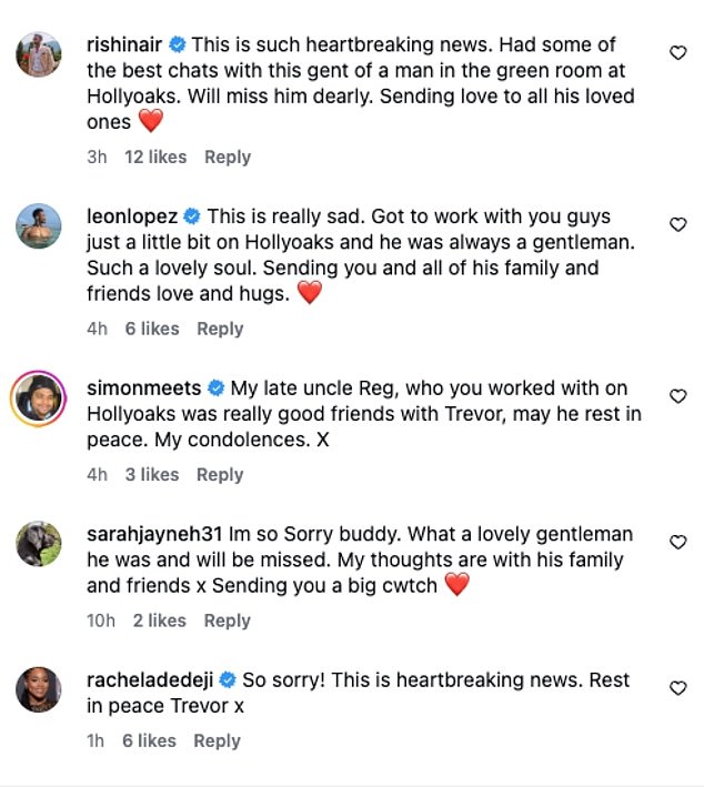 Loose Women star Kellé Bryan, who played Trevor’s on-screen daughter Martine Deveraux, led the touching messages.