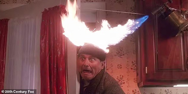 But their efforts were thwarted thanks to a booby trap Kevin (Macaulay Culkin) set up in which paint cans were thrown into their faces.