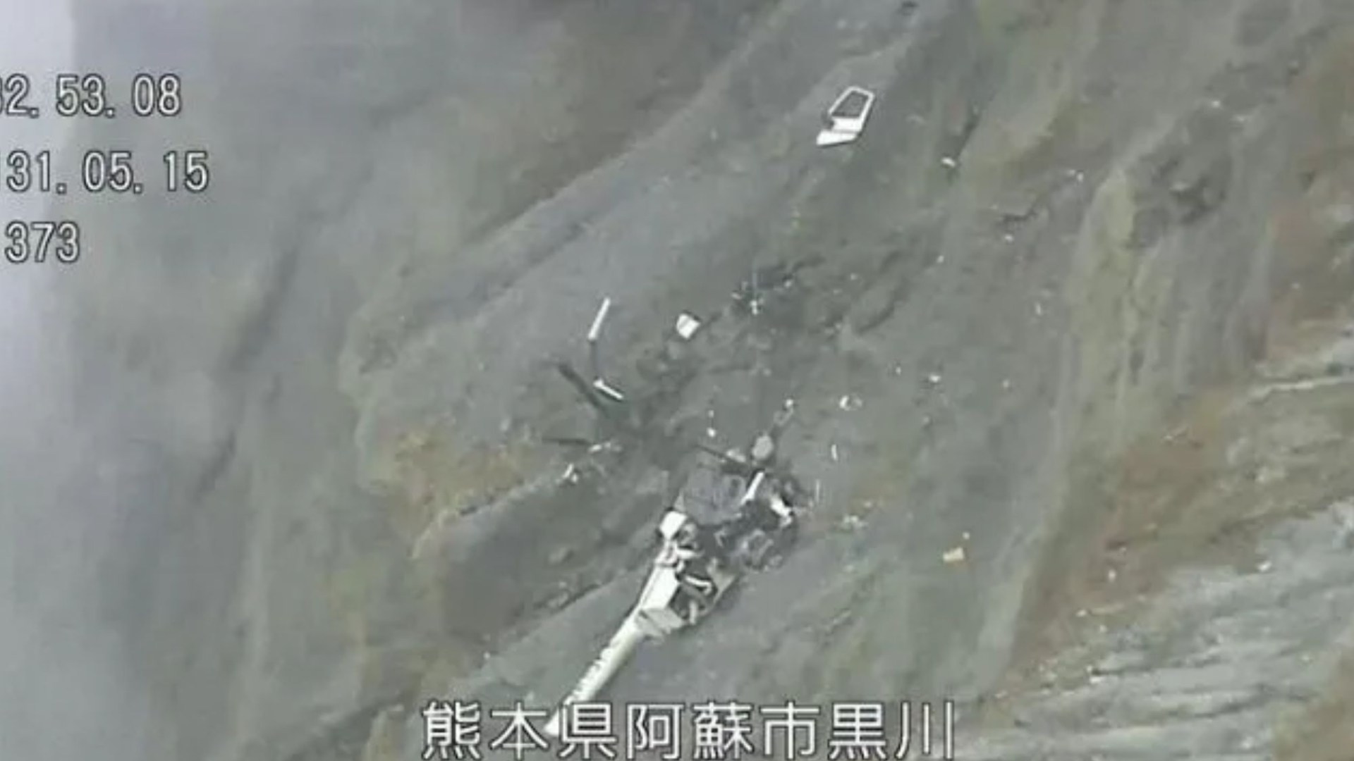 HEARTBREAKING images have emerged of the twisted wreckage of a sightseeing helicopter that vanished while flying over an active volcano in Japan.