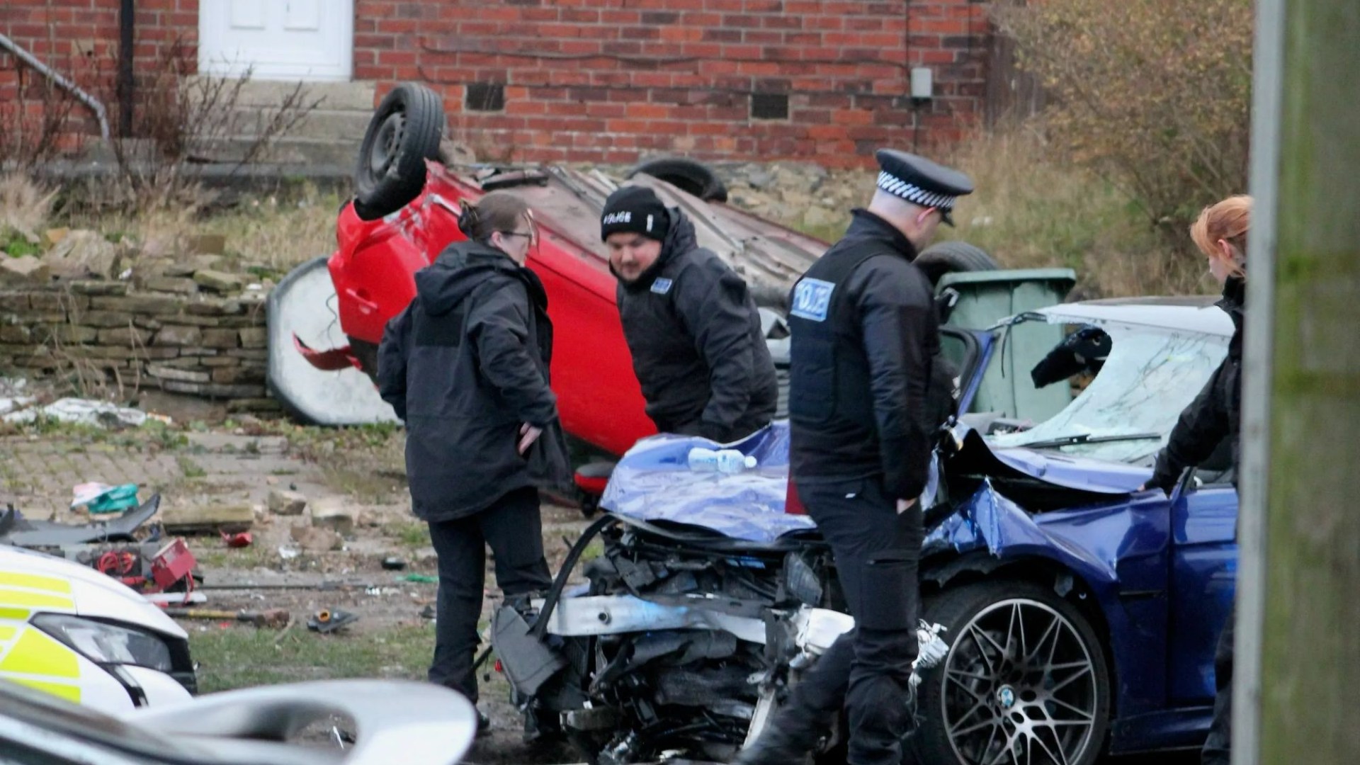Emergency services raced to the scene in Bradford, West Yorkshire, following the horror crash in the early hours of this morning.