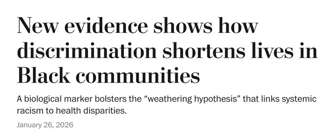 Nearly half of the mortality gap between Black and White adults can be traced to the cumulative toll of stress and inflammation, a new study shows.These two biomarkers bolster the “weathering hypothesis” that links systemic racism to health disparities. https://wapo.st/4rg6NWj