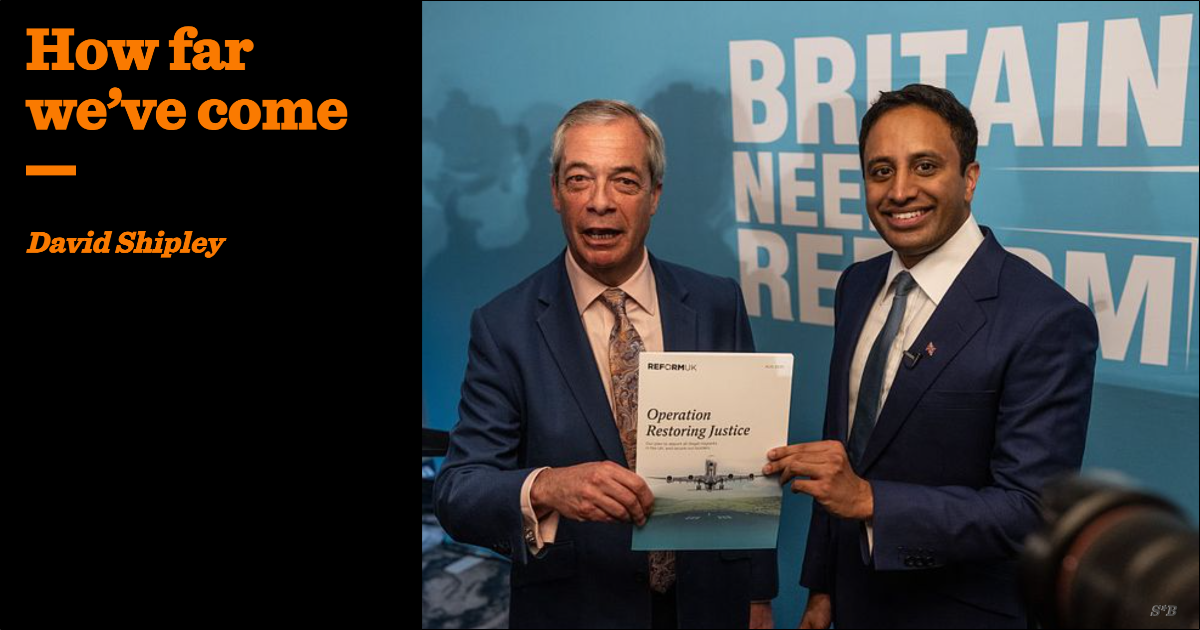 So to those who are tempted to blackpill, to succumb to despair, look at where we are. Since the last election the political ground around migration has moved more than it has in my entire life. Victory is not inevitable, but it is ours for the taking.