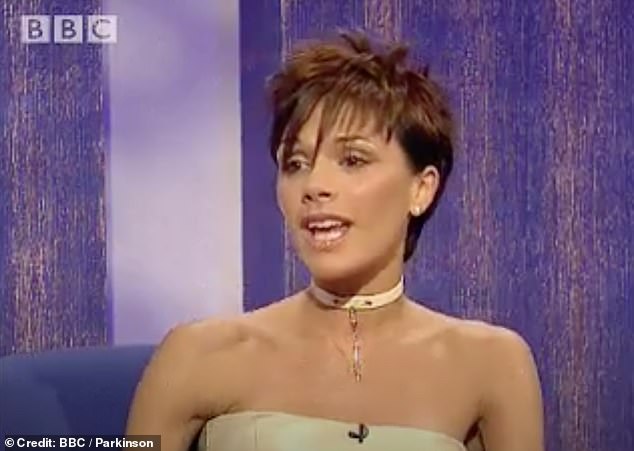 Unearthed interviews have shown Victoria Beckham was publicly shamed for her weight when she was asked if she was anorexic by Michael Parkinson and made to stand on the scales by Chris Evans (pictured during her interview with Michael Parkinson in 2000)