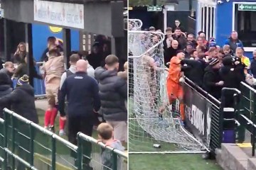 Non-league clash abandoned after huge fight as goalkeeper is seen punching fan