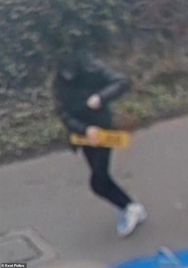 Images released by Kent Police show two hooded men dressed in dark clothing fleeing the area on foot while one holds a yellow number plate