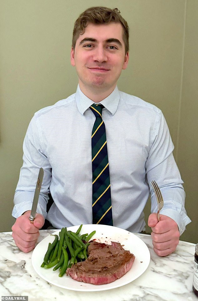 For dinner, eaten just before 7pm, the health secretary indulges in a 12oz rare ribeye steak cooked in beef tallow, the melted fat from cows, alongside green beans and asparagus.
