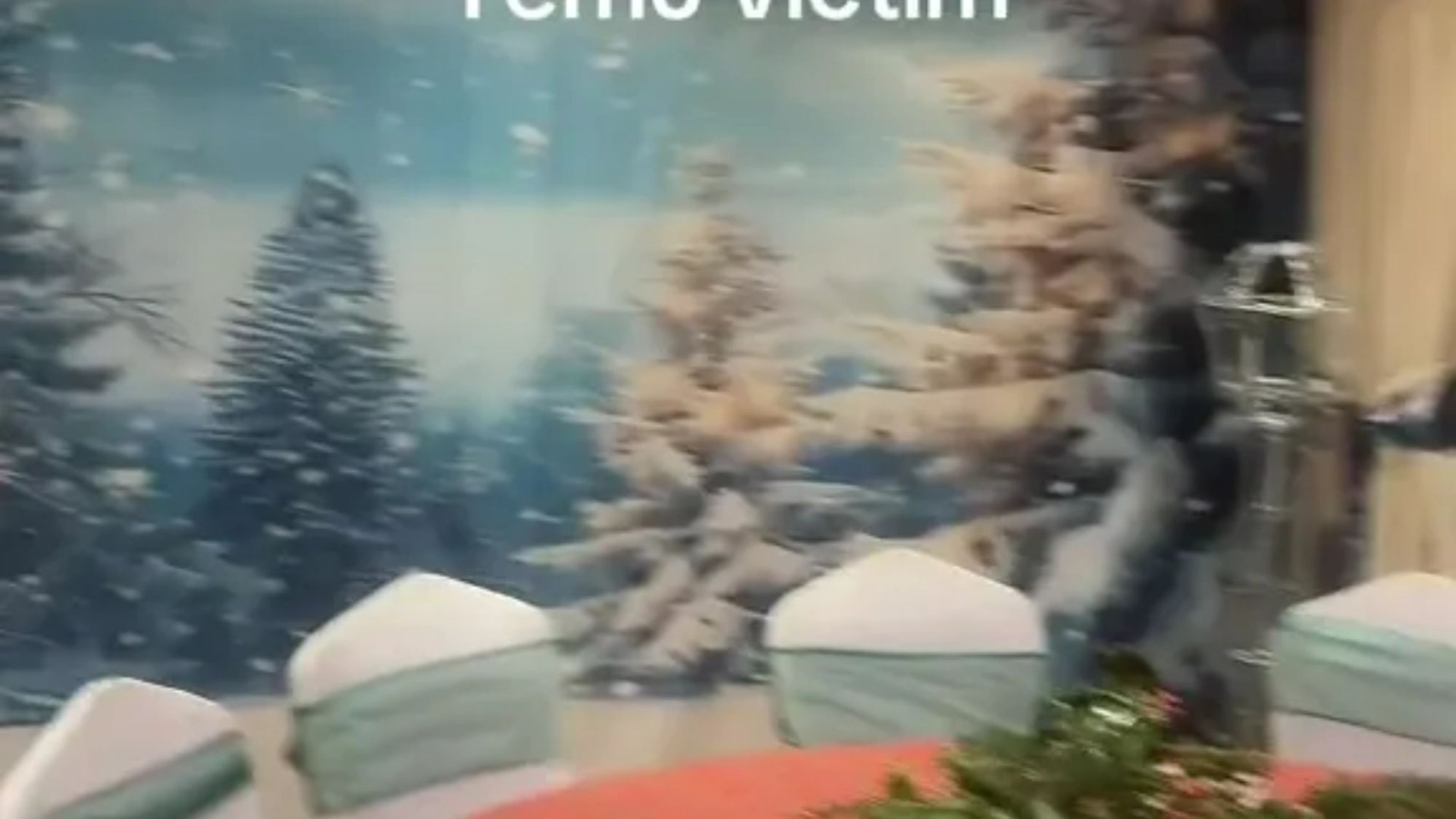 The daughter showed how her mum had covered the walls of their dining room with a gigantic winter scene.