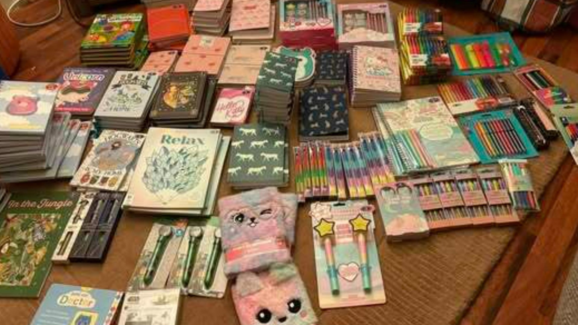 The bargain hunter uploaded photos of her floor covered in pens, highlighters, and notepads – and people were amazed at her huge haul.