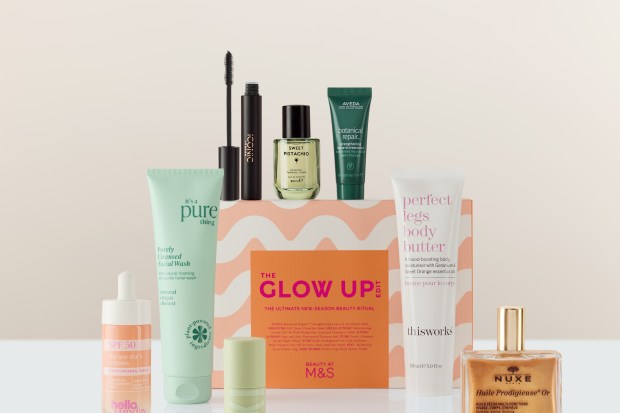 M&S The Glow Up Edit, £30, worth £133, contains four full-size products, and four travel sizes from Aveda, Hello Sunday, Nuxe and This Works.