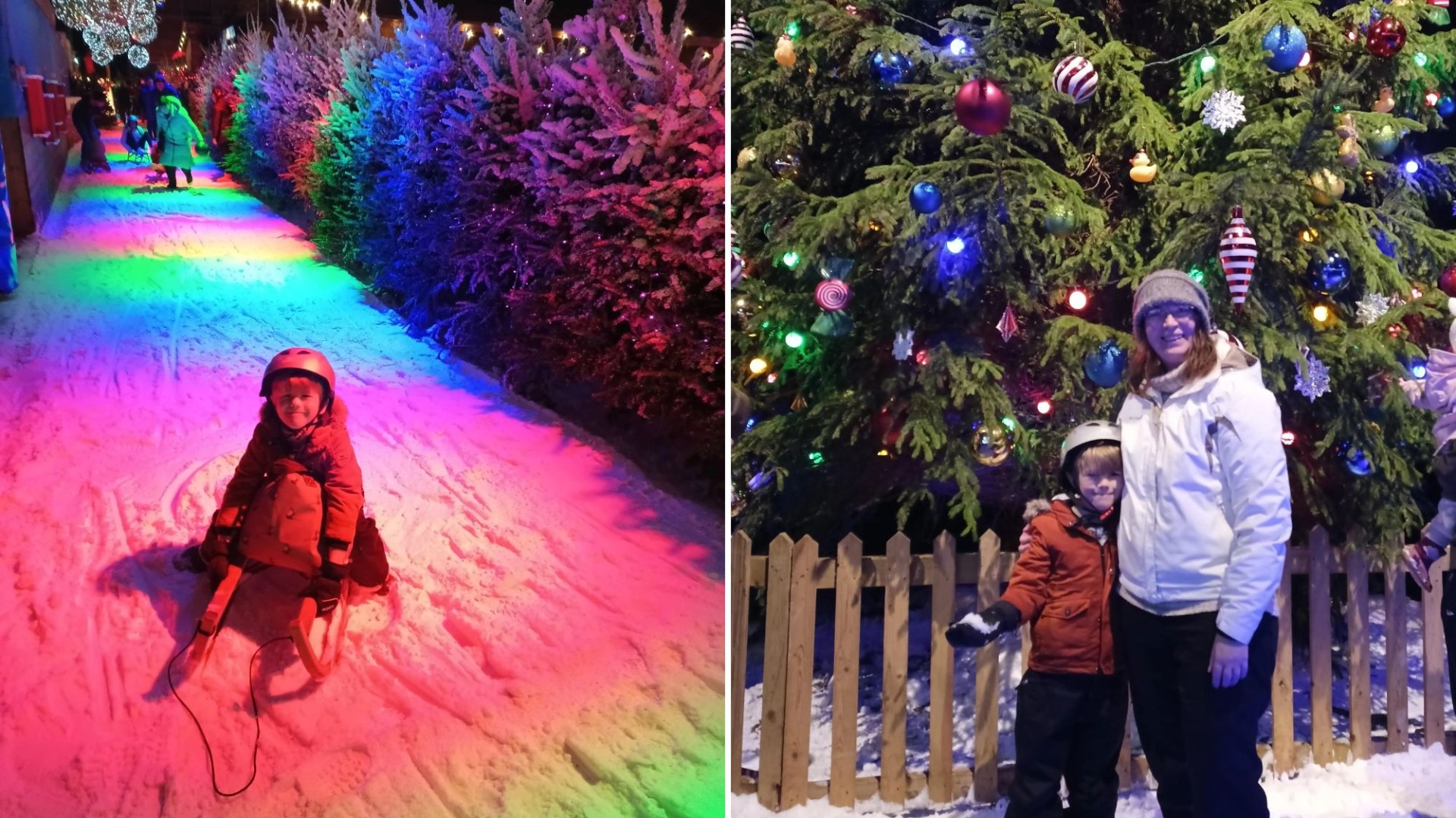We spent a happy half hour playing in the snow, with little slopes for snowtubing, a big track to pull sledges around and festive touches as far as the eye can see.