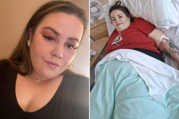 Emilly Murray, 35, tipped the scales 22st 1.5lbs and struggled to squeeze into a size 30 at her heaviest after battling binge eating her whole life.