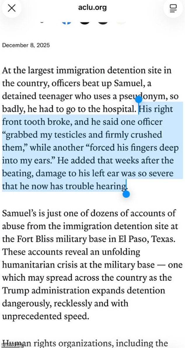‘These acts of violence,’ the ACLU wrote, ‘reflect a pattern of brutality that violates even ICE’s minimal standards.’
