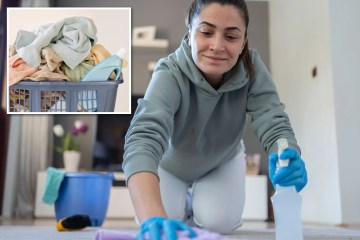 But she doesn’t just do a spot of hoovering and dusting – Mimz scrubs the kitchen counters, deep cleans the oven trays, does a clothes wash, cleans the sofa, wipes down the cupboards and deep cleans the sink and hob.