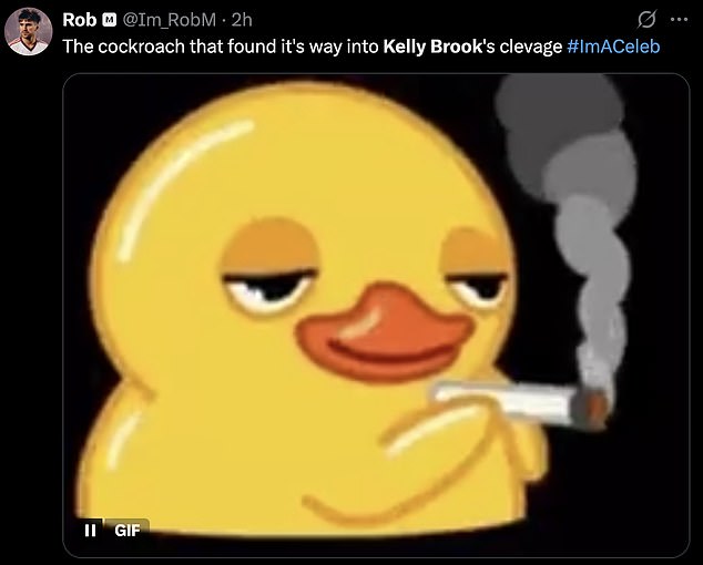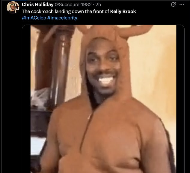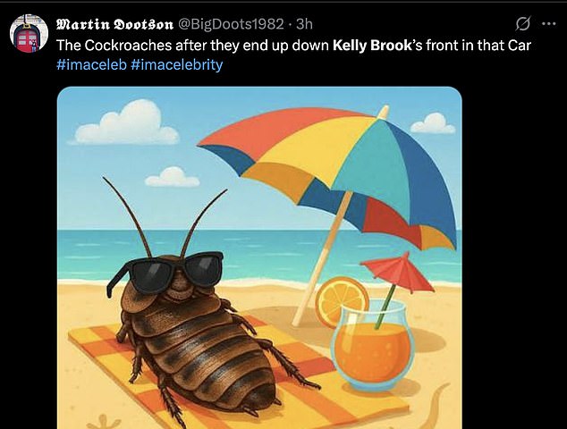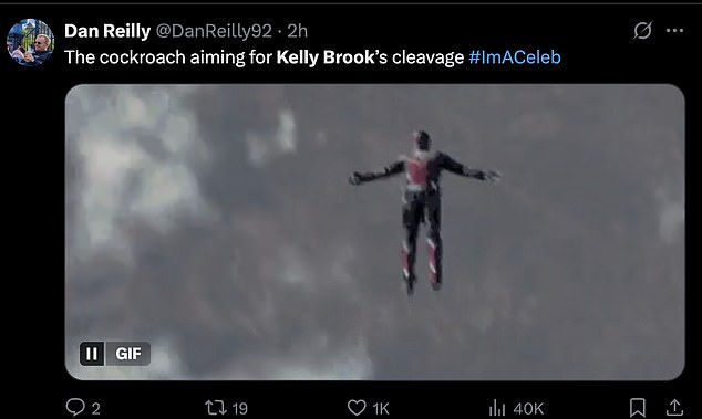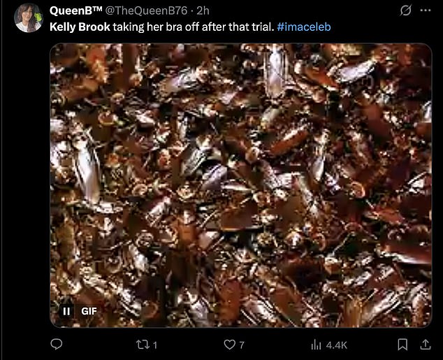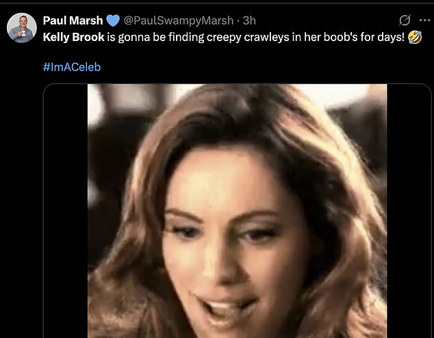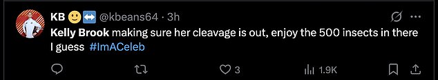 ‘Kelly Brook making sure her cleavage is out, enjoy the 500 insects in there I guess’;