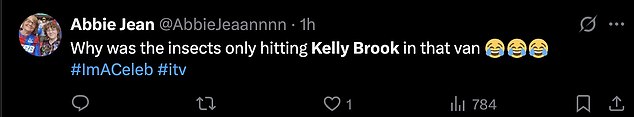 Another joked: ‘Why was the insects only hitting Kelly Brook in that van’.