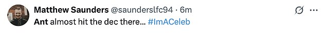 Another fan wrote: ‘Ant nearly going flying has just made my day. sorry pal’