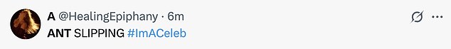 ‘ANT SLIPPING’; ‘Did Ant enjoy his trip in tonight’s start of #I’m A Celeb.’