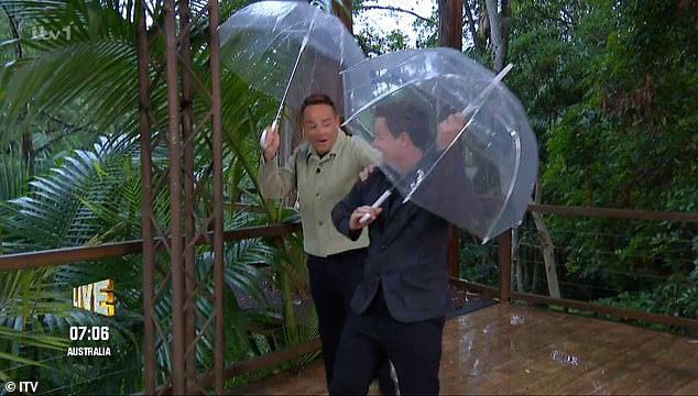 The ITV show descended into chaos when Ant almost suffered a tumble while opening the episode, and failed to open his umbrella, before throwing it off screen
