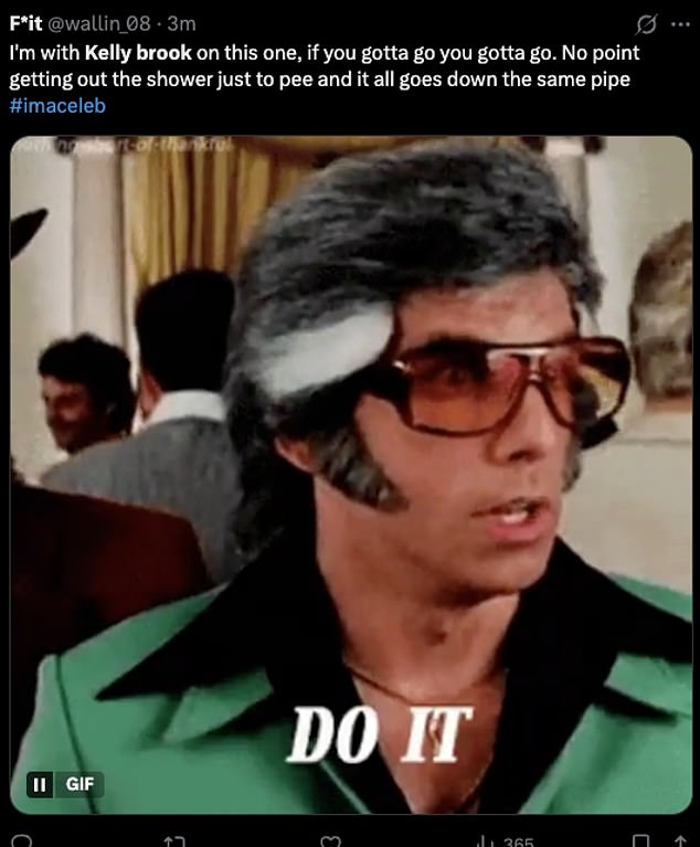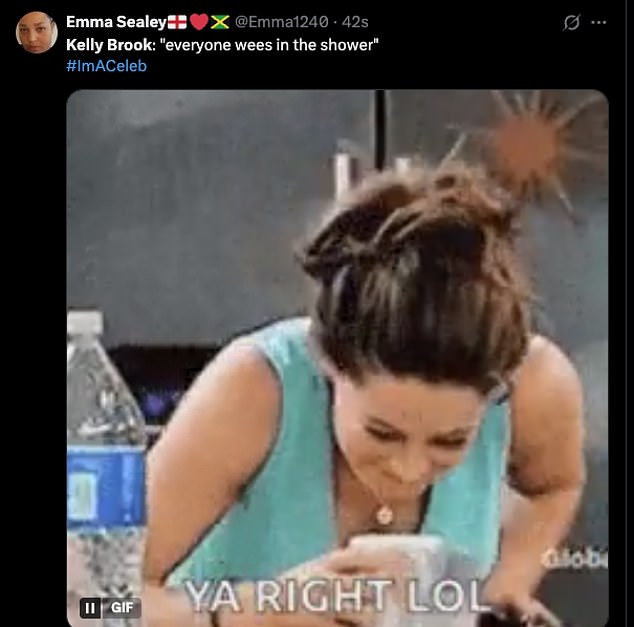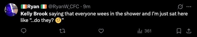 They wrote: ‘Kelly Brook saying that everyone wees in the shower and I’m just like: “do they?”‘;