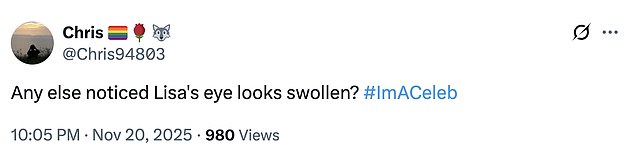 Another asked: ‘Any else noticed Lisa’s eye looks swollen?’;