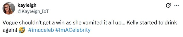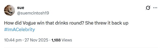 They wrote on X: ‘How did Vogue win that drinks round? She threw it back up.’