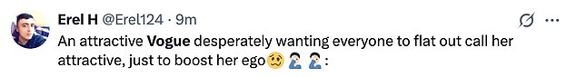 ‘An attractive Vogue desperately wanting everyone to flat out call her attractive, just to boost her ego’,