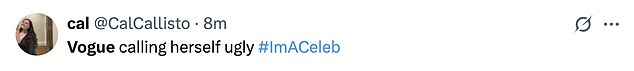 Critics wrote: ‘Vogue calling herself ugly #ImACeleb’,