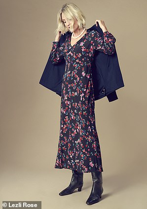 Equally wearable is M&S’s ditsy floral ruched midaxi dress (£50), in size range 6-24.