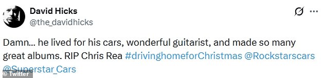 Tributes swiftly flooded in for the star on X, with many referencing his music, his love of cars and the cruel irony of his passing being so close to Christmas.