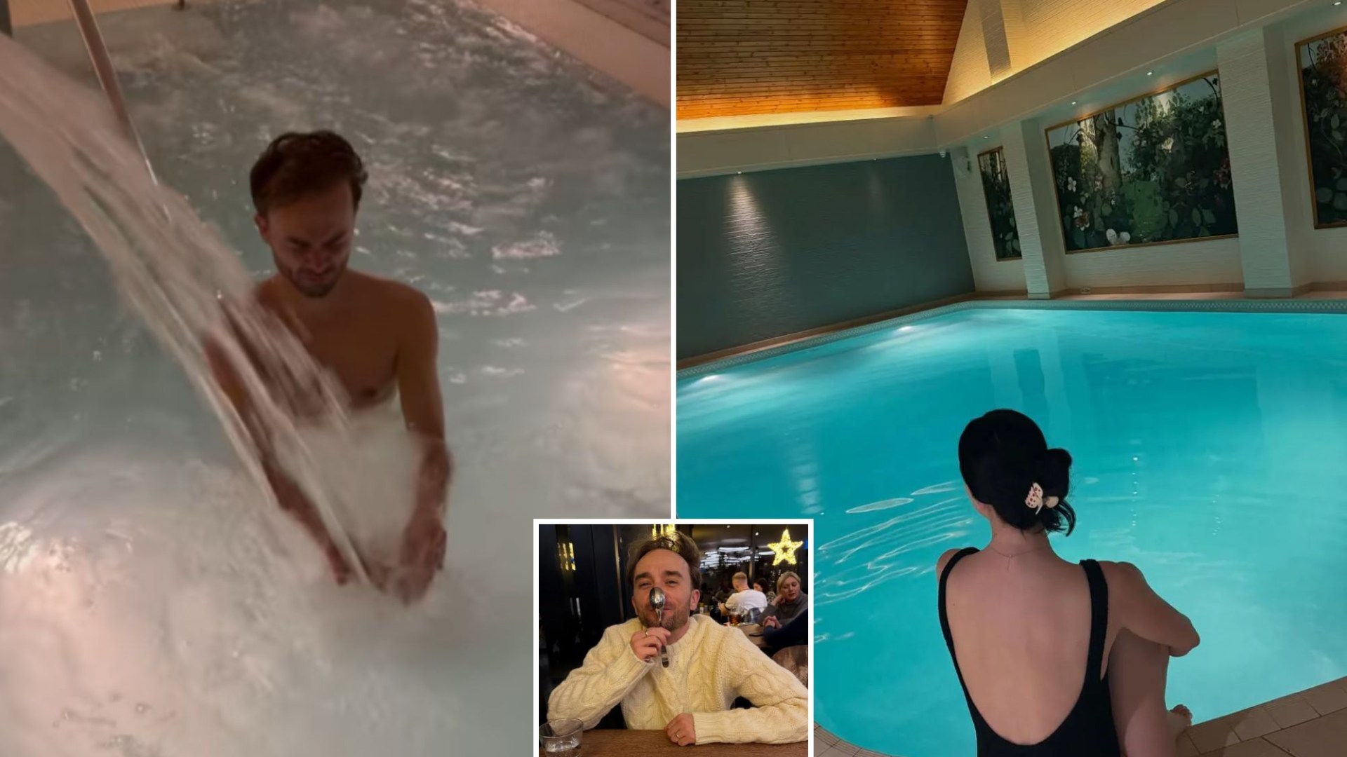 Jack, 37, was also seen enjoying the hydrotherapy pool before they enjoyed hot chocolates by the fire.