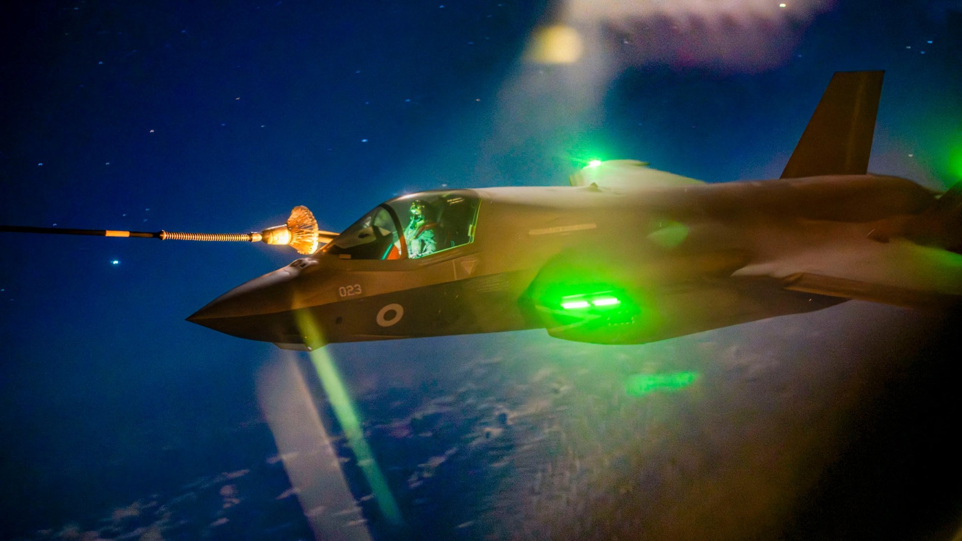 The F-35 cruised in place for ten minutes — its pilot silhouetted by the light of the moon — as we looked on in awe at the sci-fi-like spectacle.