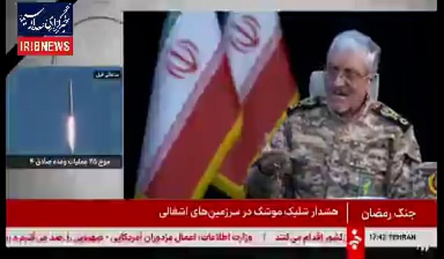 He said that Iran’s weapons stockpile could be maintained in the ‘long term’ and its reserves of bombs, drones and missiles were ready to fire and remained intact.