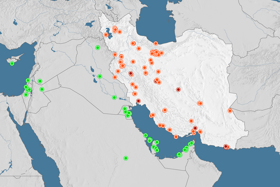 This map, updated with data from Monday, March 2, shows confirmed and reported strikes by the United States and Israel in Iran and retaliatory missile, rocket, and drone attacks carried out by Iran and its allies.