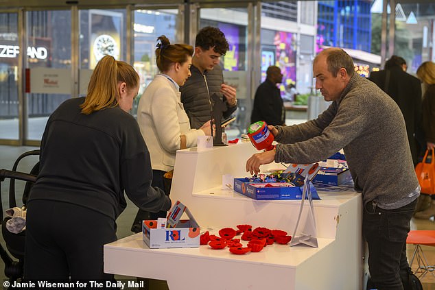 The volunteer seller, who did not want to give his name, said: ‘It’s a lot quieter than previous years. A lot of people just come and give money and don’t take a poppy.