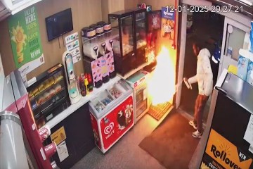Bizarre moment rapper uses FLAMETHROWER to set Tango Ice Blast machine on fire