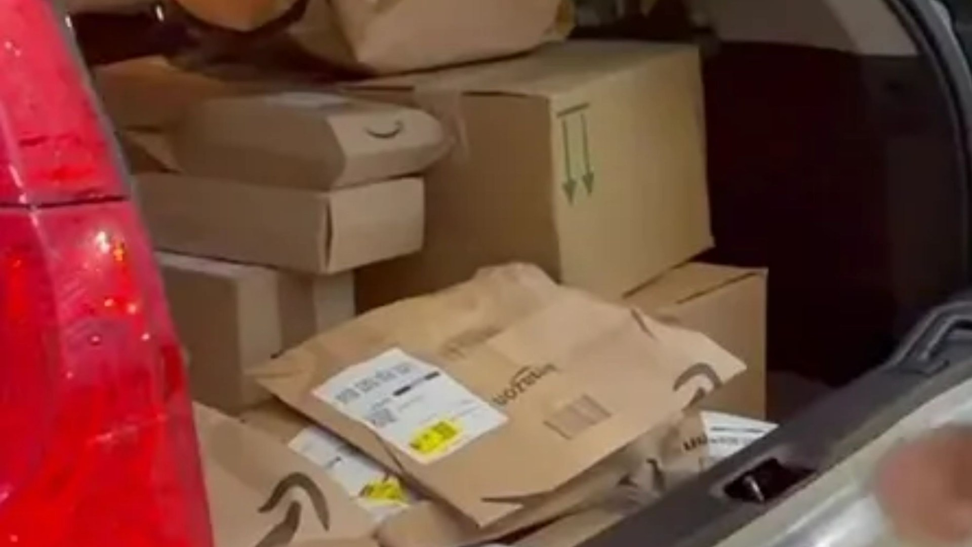 Working together, Maddie’s husband found the Amazon packages for her, while she then ran out, delivered the parcel and picked up the next.