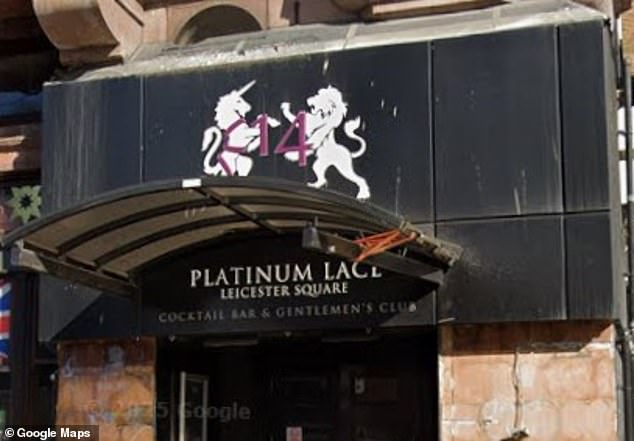 The gang reportedly smashed back £14 shots as women at Platinum Lace strip club in Leicester Square danced around them into the early hours on Sunday December 21.