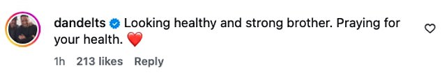 ‘Looking healthy and strong brother. Praying for your health,’ one commented.