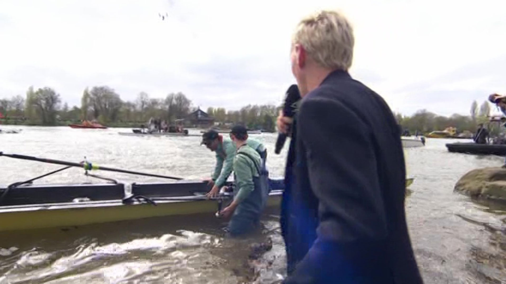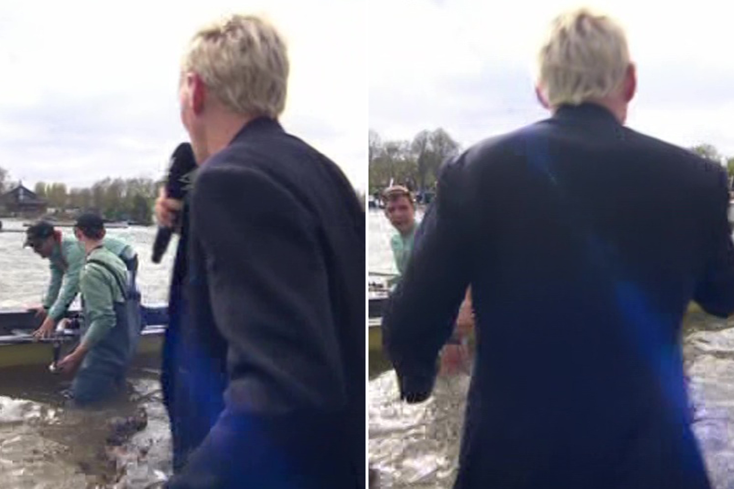 JAMIE LAING was left with a soggy suit after interviewing victorious Cambridge stars following the men’s Boat Race.