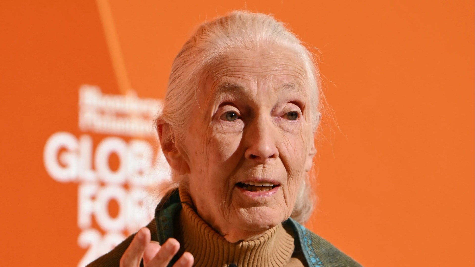Jane Goodall speaking at the Bloomberg Philanthropies Global Forum 2025.