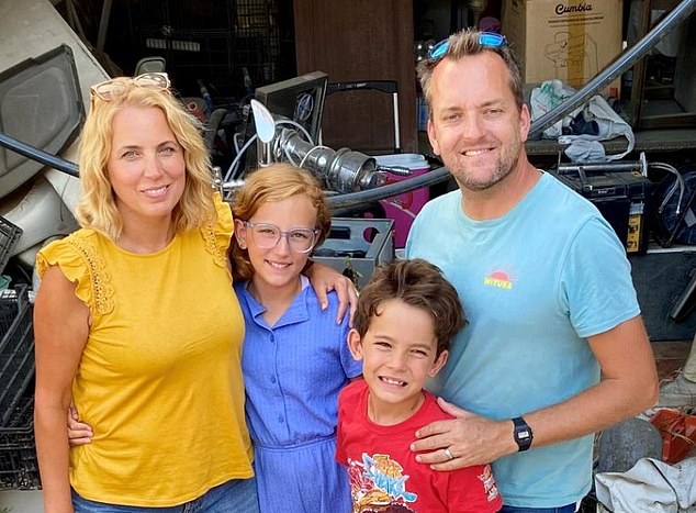 Jasmine with her children Joy, now 12, and Albion, 9, and her husband Jon